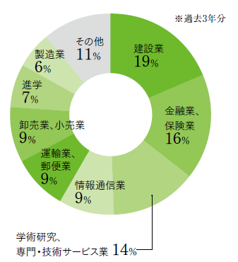 - 電子部品・デバイス・電子回路製造業/建設業/はん用・生産用・業務用機械器具製造業/輸送用機械器具製造業/その他の教育・学習支援業/宗教/国家公務