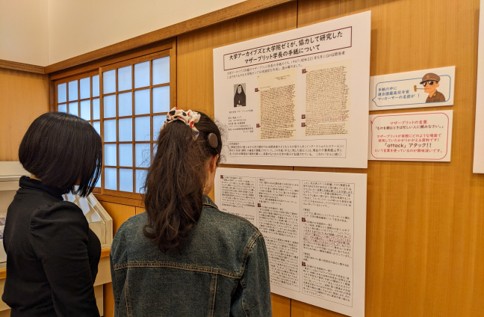 学生らが大学史資料を読み解いた成果を旧久邇宮邸車寄で展示