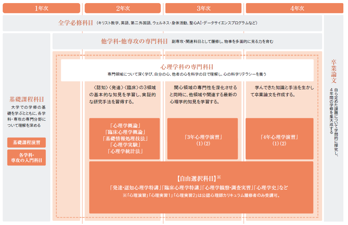 必修科目の心理学概論などにより、認知・発達・臨床の3領域について基本的な知見を広く学修することができます。加えて、そこで興味を持った領域や関連する領域をさらに深めるカリキュラムを用意し、ヒトの心理と行動にまつわるさまざまな謎を解明する思考力を養います。