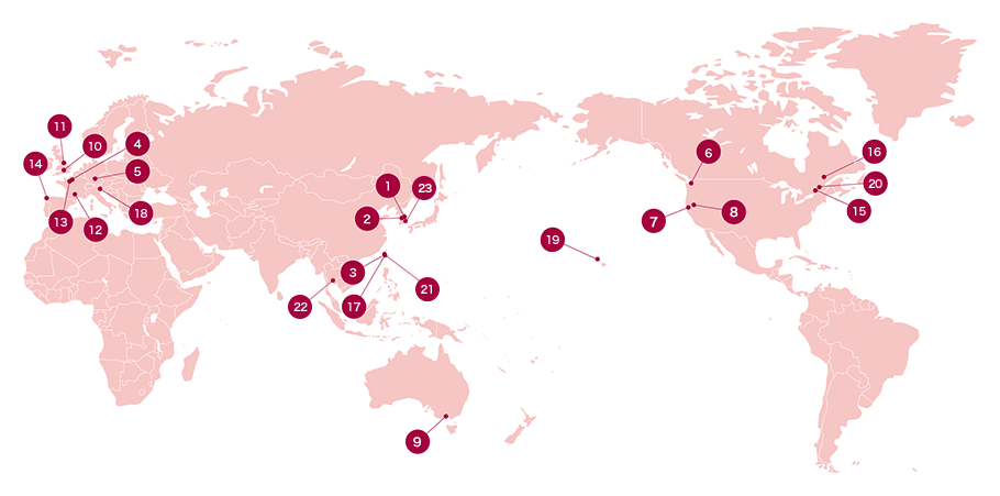 本学では、1974年に米国及び韓国の姉妹校との留学制度に基づく留学生の派遣を開始しました。現在(2025年9月時点)、協定校は23校を数え、累計で400名以上の学生を派遣しています。