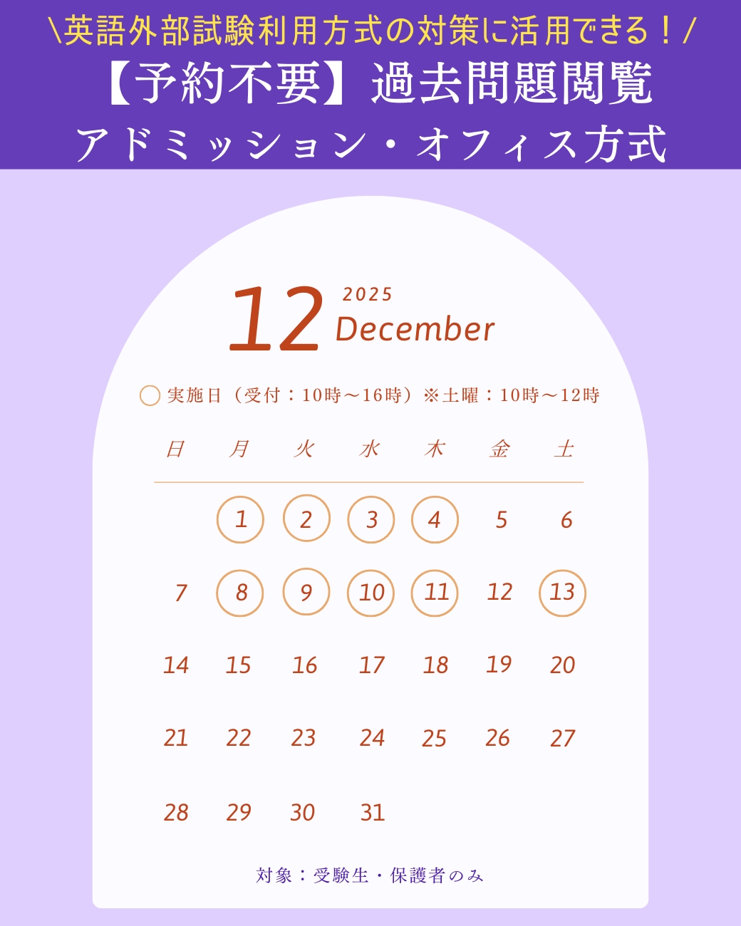 【予約不要】英語外部試験利用方式受験生対象 小論文問題閲覧