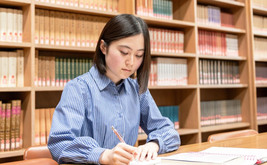 「日本語教授法」の授業を通して、日本語教育と心理学の分野が密接に関係していると感じ、心理学も専門的に学ぶために、心理学科の「発達心理学特講」を履修。二言語二文化を持つ子どもの発達と心理に興味を持ちました。その中でも私は、「外国の子どもが日本で生活するときの諸問題」について焦点を当てて調べています。