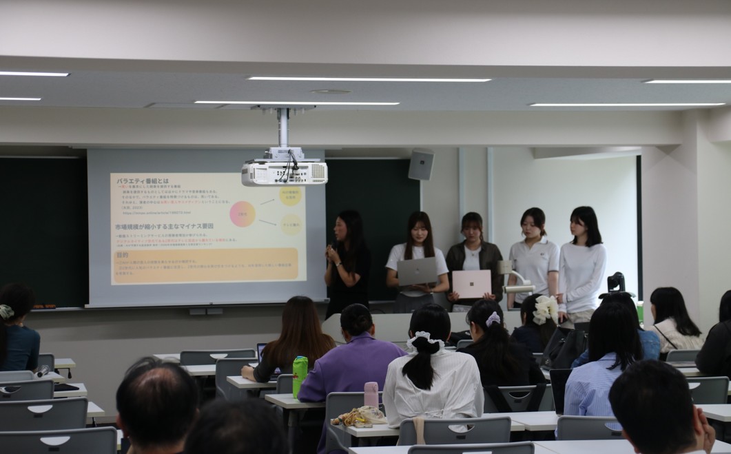 本学は2024年、一般社団法人電子情報技術産業協会(JEITA)との連携協定を締結しました。この協定の一環として、人間関係学科ではプロジェクト型授業「情報活用の社会的実践」を開講しています。今年度は「AIは放送をどう再定義するか」というお題をJEITAよりいただき、各班がプレゼンを行いました。