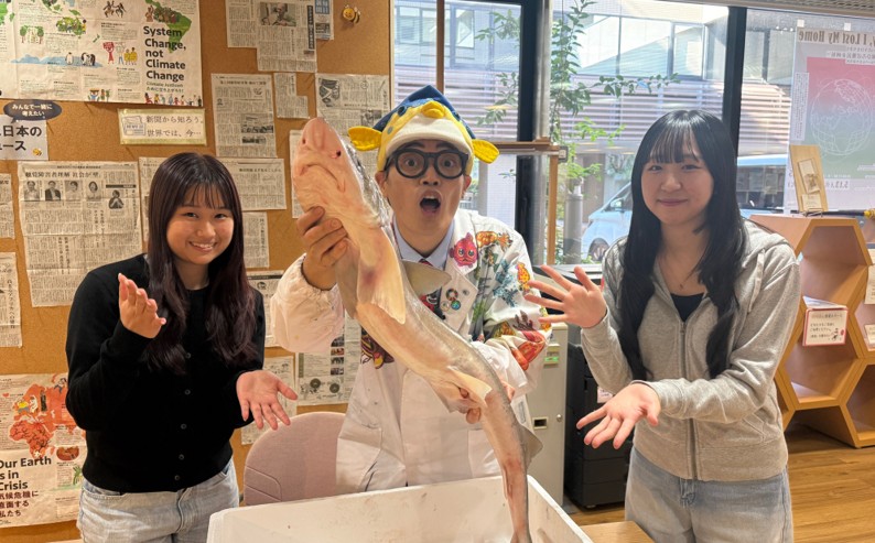 招聘研究員のさかなクンと本学学生がコラボし「食による被災地支援」を実施