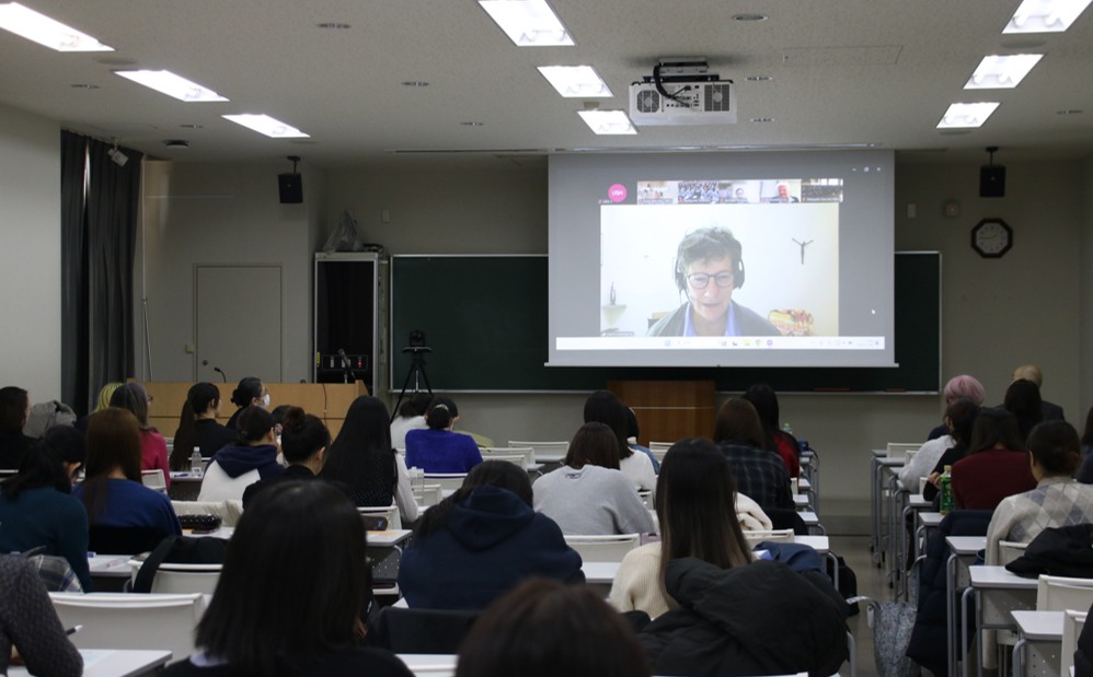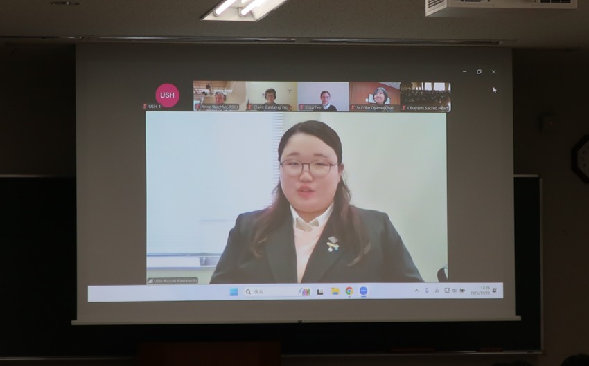 聖心女子大学*は世界に数多くある、聖心の姉妹校の一つです。11月20日に、姉妹校がオンラインで集い、学校の母体である聖心会の総長シスタークレア・カスティン(Sr. Claire Castaing)のお話を聞く交流会が開催されました。参加したのは、台湾、韓国、オーストラリアの姉妹校と、日本の姉妹校(聖心女子学院、不二聖心女子学院、小林聖心女子学院、聖心インターナショナルスクール、本学)です。本学からは約180名の学生・教職員が参加しました。