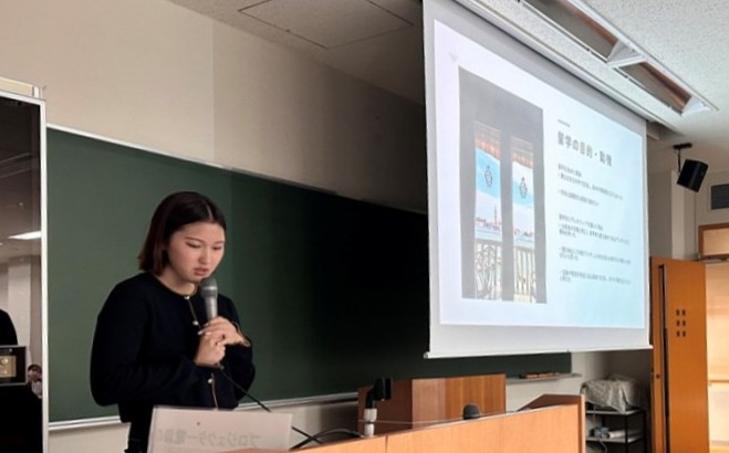 国際センター長の岩田一成教授(日本語日本文学科)からは、コミュニケーションの取り方と言語習得の関係性や、計画的な留学準備の重要性などへのコメントがありました。発表者たちにとっては改めて自身の留学生活を振り返る機会となり、また、会場では長期留学を希望する学生が発表者に個別に質問をする姿も見られ、有意義な会となりました。