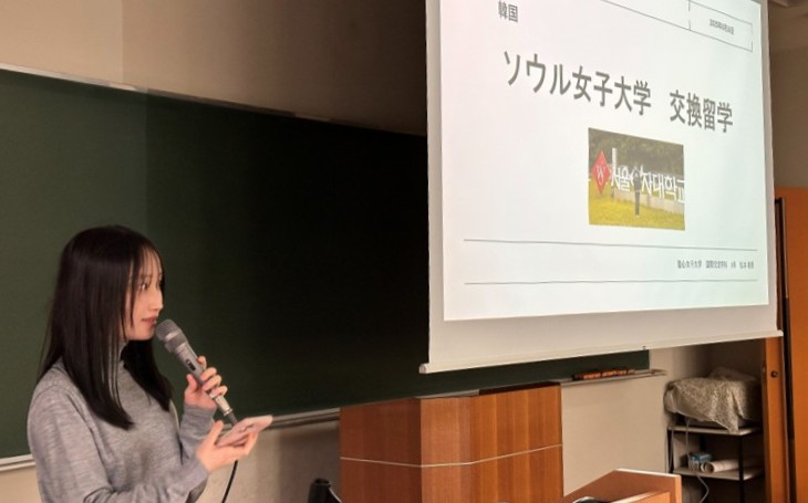 このたび、国際センターでは、2025年度前期に長期留学を修了した学生による帰国報告会を開催しました。長期留学とは、海外の大学(協定校等)へ1学期間または1年間の留学をし、本学所属学科での学問分野を学修することを目的とした留学制度です。このたびの報告会では、アメリカ、フランス、イタリア、韓国の長期留学協定校に留学をした6名の学生が、留学中の学修や生活、印象に残った経験、留学によって得られた成果などについて発表を行いました。