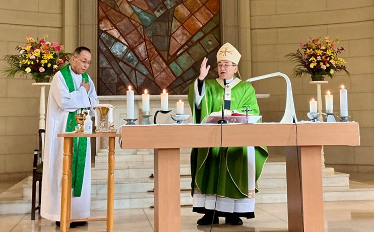 菊地功枢機卿様と石脇秀俊神父様の共同司式による学生ミサ開催