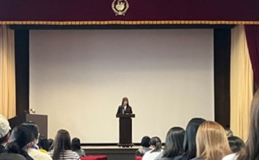本学では年1回、国際交流学科の主催により日本語スピーチ大会を開催しています。これは本学で学ぶ留学生が日頃の勉学の成果を披露する場であると同時に、本学すべての学生にとっても、海外からの留学生の眼差しを通した日本のあり方に目を向ける機会ともなっています。